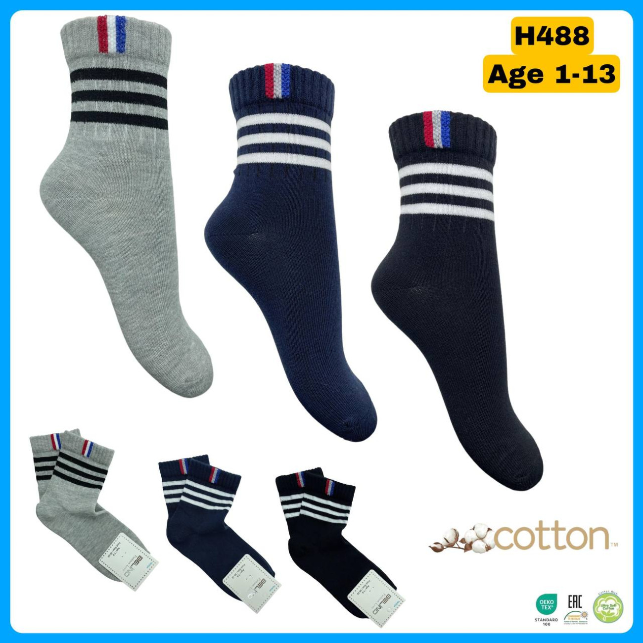 Описание Хлопковые носки для мальчиков 7-8 лет ТМ Belino (6 шт/уп)